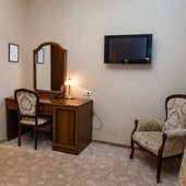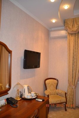 Номерной фонд оборудован телевизором, телефоном и возможностью выхода в Интернет.