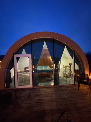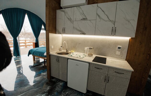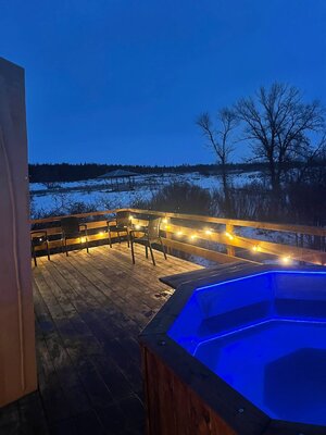 Погрузитесь в блаженство горячей воды под открытым звездным небом. Наша купель — это идеальное завершение дня, наполненного приключениями.