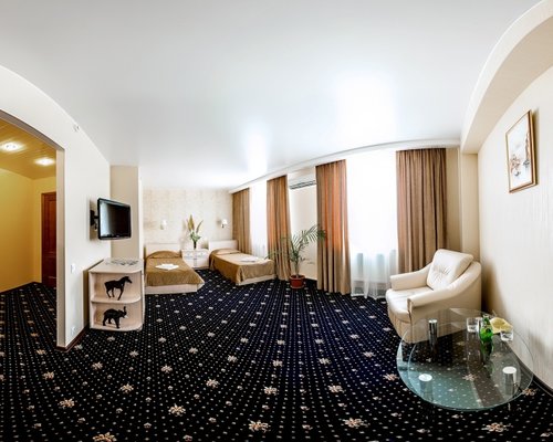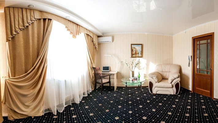 Парк-отель «Новый Век» расположен всего в 4 км от центра города, рядом с различными достопримечательностями, кафе, магазинами и остановками общественного транспорта. Гостям предлагается комфортное размещение в 5-этажном здании, где есть лифт для удобства. Номера отеля оформлены в изысканных стилях с роскошными деталями, включая современные удобства.