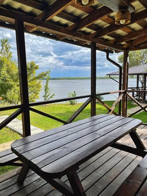 Кедровая бочка расположена на берегу реки, с панорамным видом на Волгу. Растапливается до комфортной температуры, которая поддерживается до 5 часов!