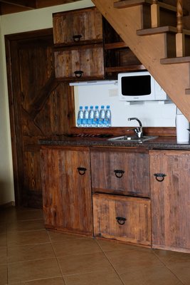 - Холодильник, раковина, барная стойка.