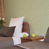 Имеются номера, как одноместные, так трехместные и люкс. Все они оборудованы удобной мебелью, а также электроприборами, необходимыми для комфортного отдыха. В ванной комнате имеется ванна или же душ, а также туалет и раковина с предметами гигиены.