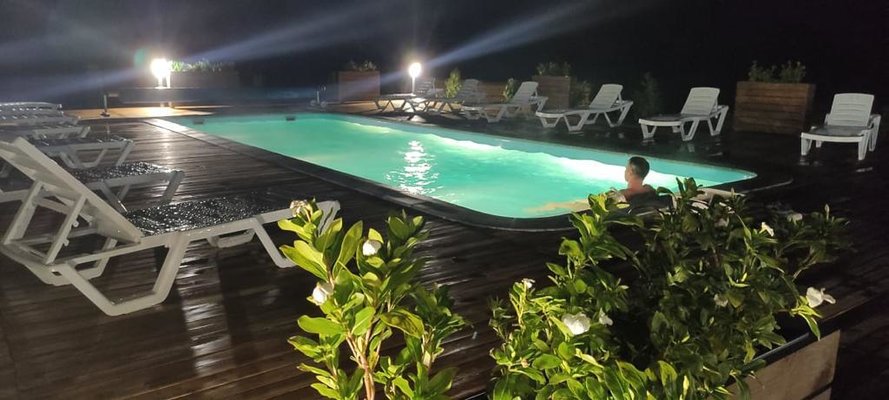Термальный бассейн находится под открытым небом. Особое удовольствие плавать в осеннее время года. В бассейне установлено самое лучшее оборудование, которое очищает воду с помощью ультрафиолета и хлора и подогревает её. Длительность пребывания в бассейне — 1 час, максимум — 1 час 10 минут.