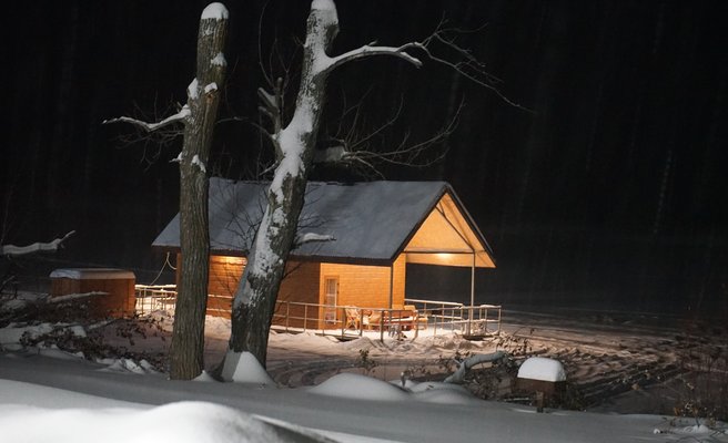 На территории базы есть прокат велосипедов, коньков и лыж и русская баня с вениками из березы или дуба.
