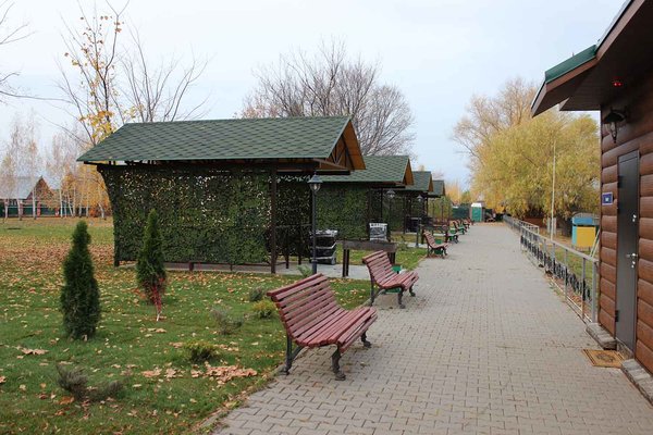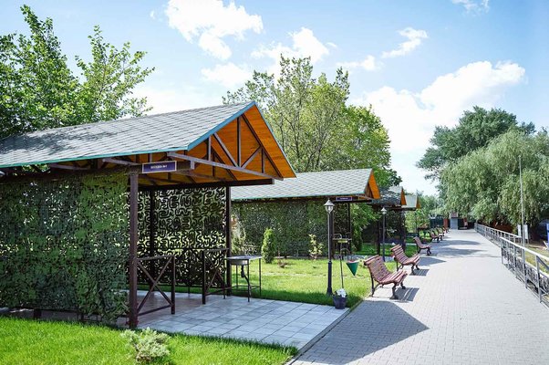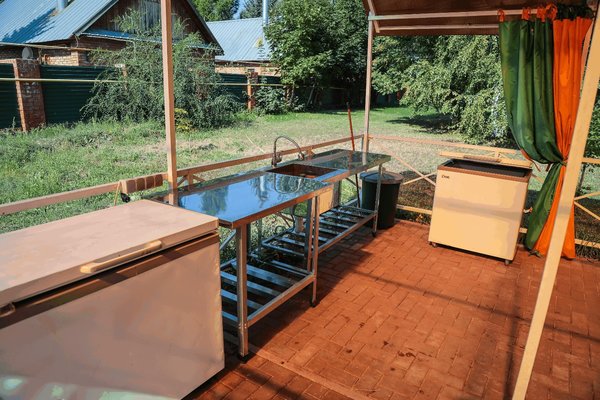 Просторная открытая беседка, оборудованная электричеством, зоной для мытья и разделки, пластиковой мебелью и мангальной зоной. Вместимость до 40 человек.