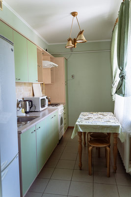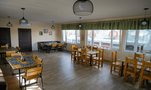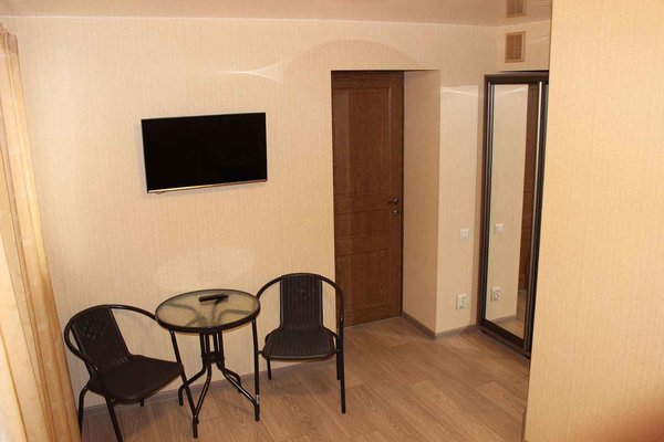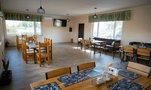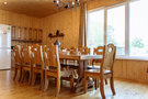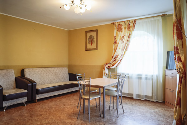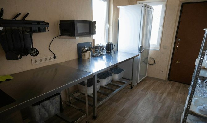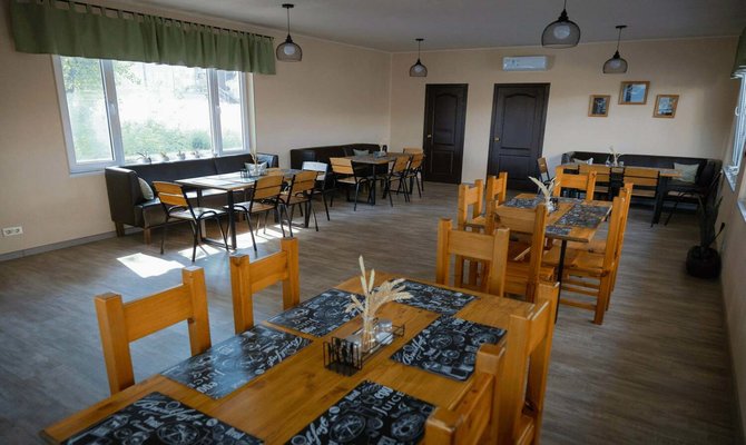 Обеденный зал на территории 5 корпуса с красивой деревянной мебелью, ТВ-панелью (55*диагональ), рядом есть оборудованная кухня (полный комплект посуды, СВЧ, электрическая плита, холодильник). Вместимость до 10 человек.