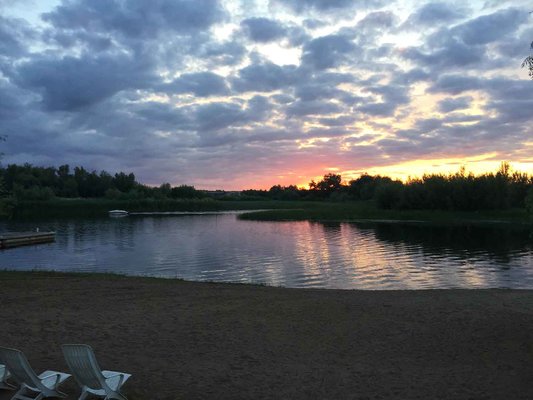 Песчаный пляж на день, есть парковка.