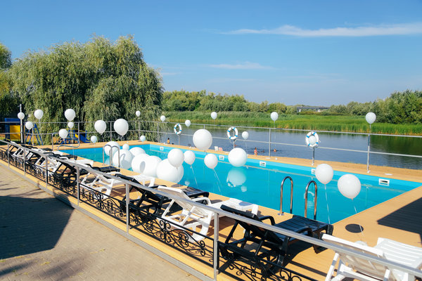 Открытый бассейн размером 5×15(м) с видом на Волгу.