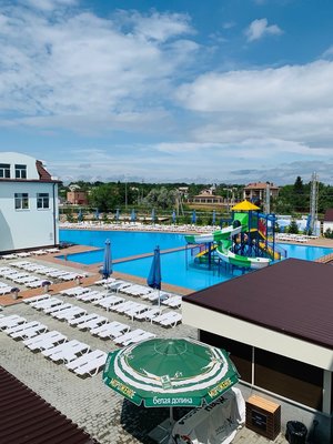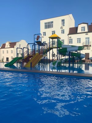 В летний период в парк-отеле «Тихая пристань» функционирует открытый бассейн с водными горками с зоной отдыха по периметру. Бассейн оснащен современной системой обогрева и фильтрации, что позволяет сохранять воду чистой и наслаждаться комфортным отдыхом даже в прохладный период. Рядом с бассейнами расположена волейбольная площадка и увлекательная игровая зона для маленьких посетителей, оборудованная качелями, горками, лесенками.