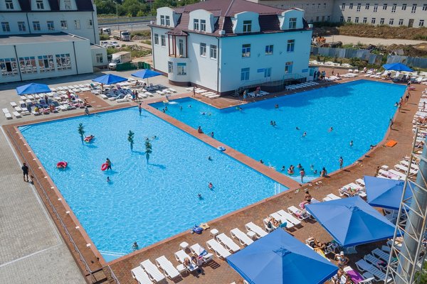 В летний период в парк-отеле «Тихая пристань» функционирует комплекс с открытыми бассейнами. На территории комплекса расположены два плавательных бассейна взрослый и детский с водными горками, удобные лежаки по периметру бассейнов, кафе, бар. Бассейны оснащены современной системой обогрева и фильтрации, что позволяет сохранять воду чистой и наслаждаться комфортным отдыхом даже в прохладный период. Температура воды в бассейнах 28 градусов. Рядом с бассейнами расположена зона активного отдыха: волейбольная площадка и увлекательная игровая зона для маленьких посетителей, оборудованная качелями, горками, лесенками.