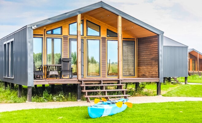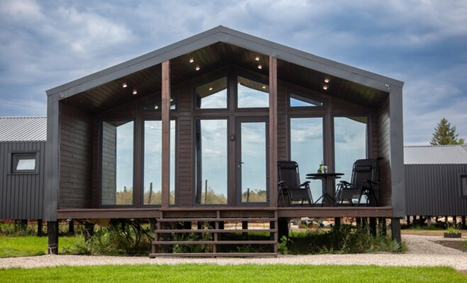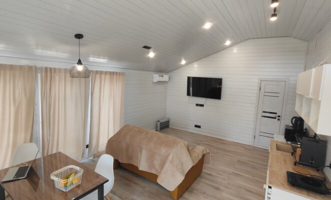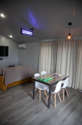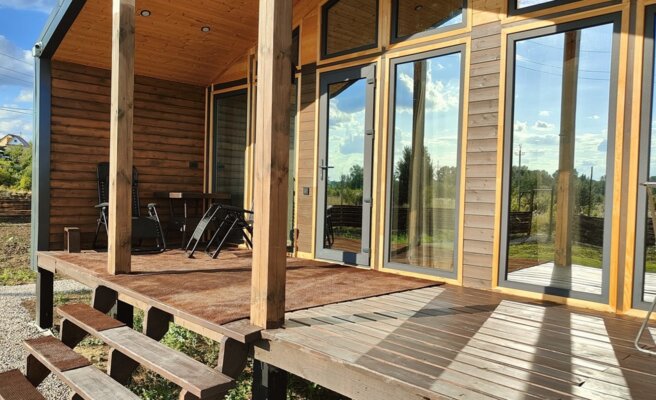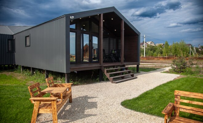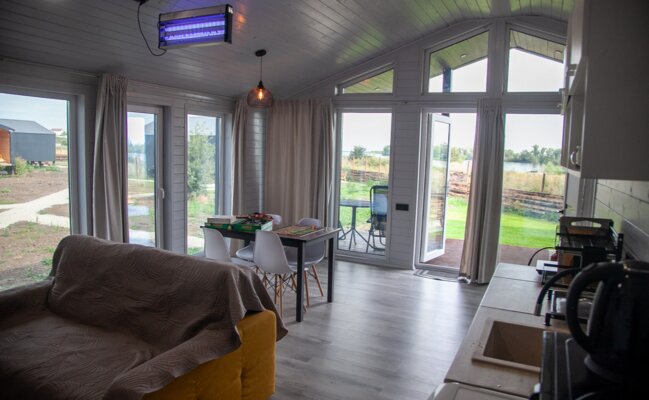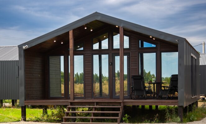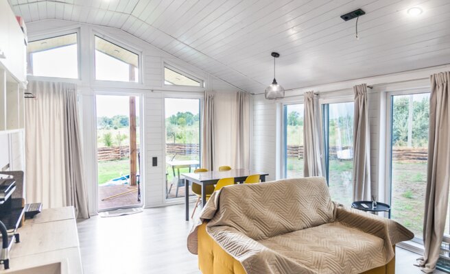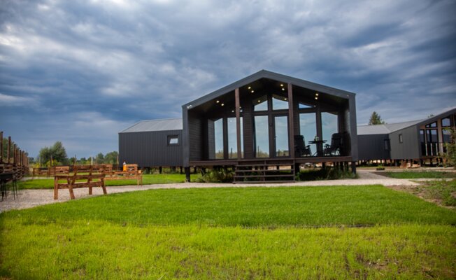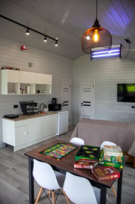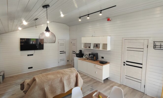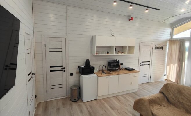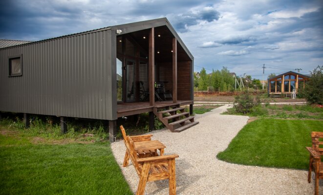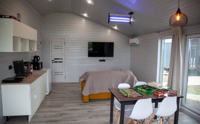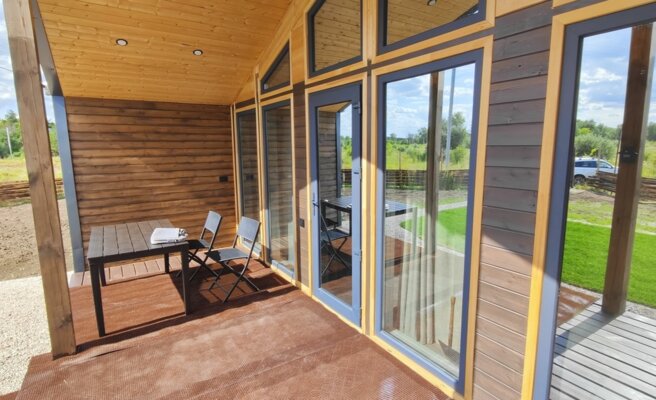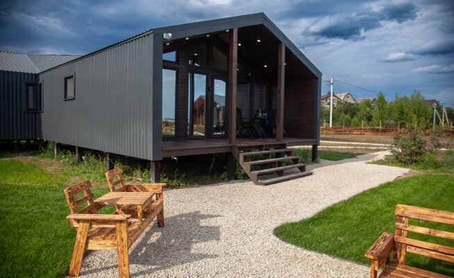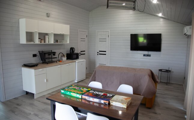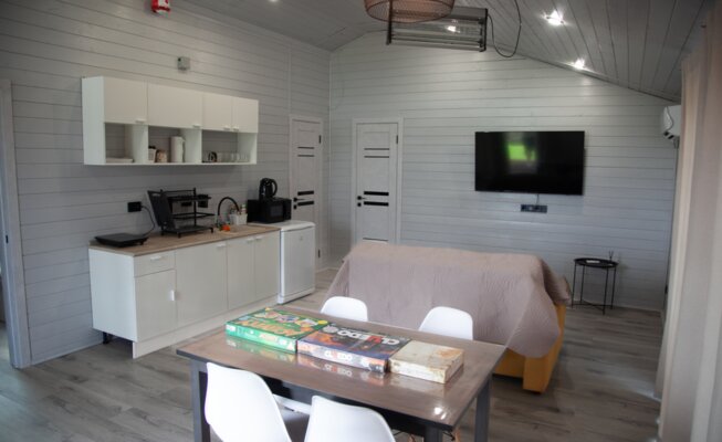 Наши уютные домики в стиле барнхаус оборудованы всем необходимым для спокойного отдыха, создавая атмосферу тепла и комфорта. Расслабьтесь вдали от цивилизации и насладитесь тишиной и уединением.