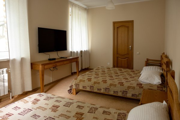 Гостиничный комплекс состоит из пяти уютных номеров, большого зала и удобной кухни, размещенных на двух этажах. В усадьбе максимально могут проживать 20 человек.