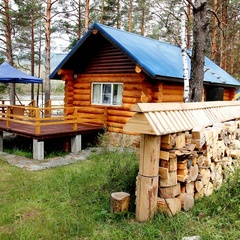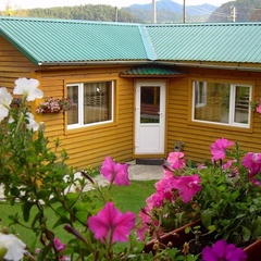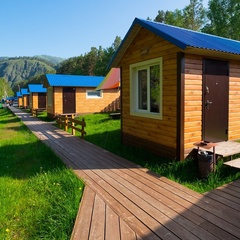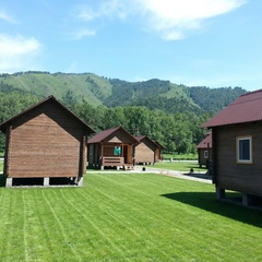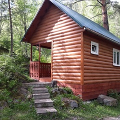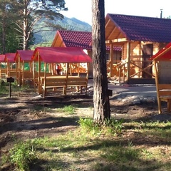 База начала работу в 2014 году. Расположена в очень живописном месте на берегу красавицы Катуни. Туристам для проживания предлагаются уютные домики из бруса со всеми удобствами, с телевизором.