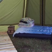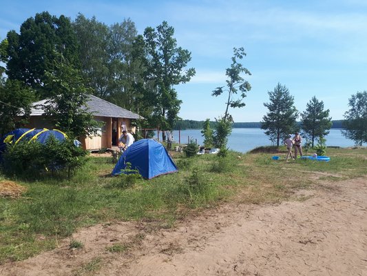 Проживание возможно в отдельном домике, палаточном шатре типа «Комфорт» или своих палатках.
