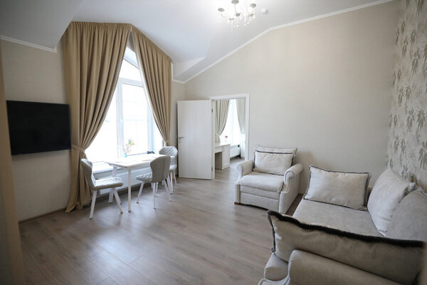 Санаторий предлагает для размещения 1-, 2-, 3-местные номера, полулюкс и люкс, а также двухэтажные таунхаусы выполнены в современном дизайне.