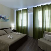 Гостиница представляет собой три отдельно стоящих корпуса. В каждом корпусе располагается 12 комфортабельных номеров различной категории. Светлые номера оформлены в тёплых тонах и оснащены кондиционерами.
