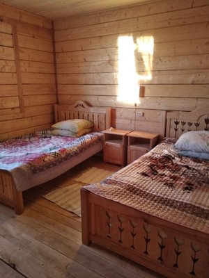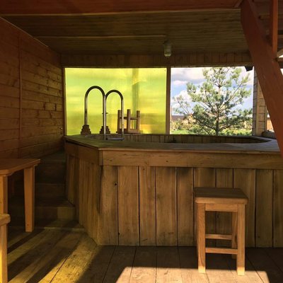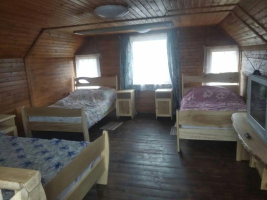 К вашим услугам: русская баня на дровах с купелью, душевая комната, туалет, площадка барбекю, веранда, помост с выходом на озеро, прорубь зимой, рыбалка.