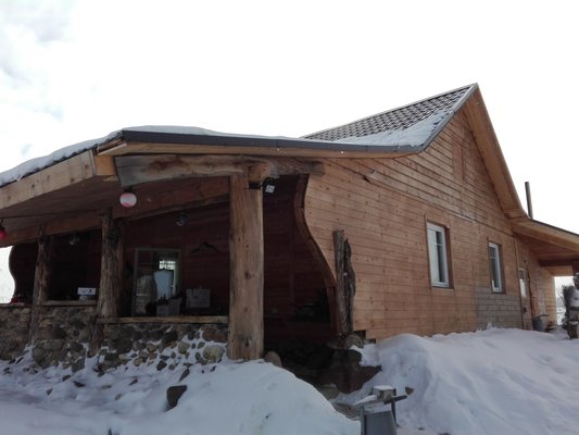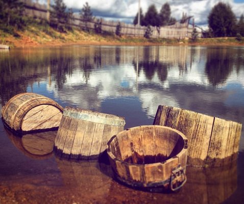 Для проживания гостям доступны уютные деревянные домики, услуги бани, большой купели и прудов с форелью.