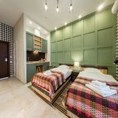 Номерной фонд состоит из комфортабельных номеров категорий: Time, Biz, Maxi, оснащенных мебелью ручной работы, мини-кухней, индивидуальной ванной. Помимо этого, проживающие могут пользоваться феном и ванными принадлежностями.