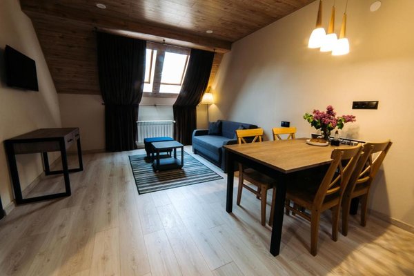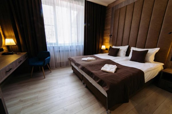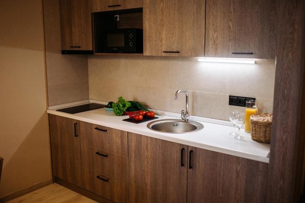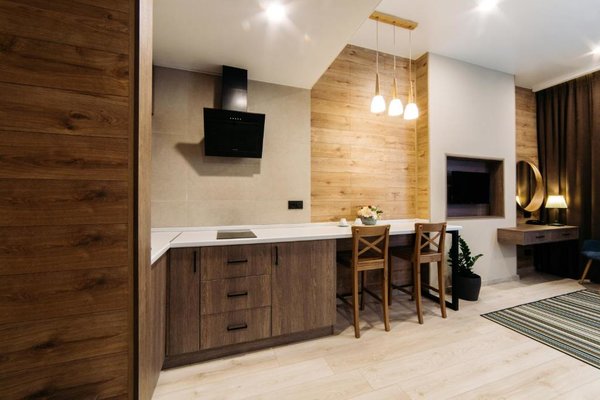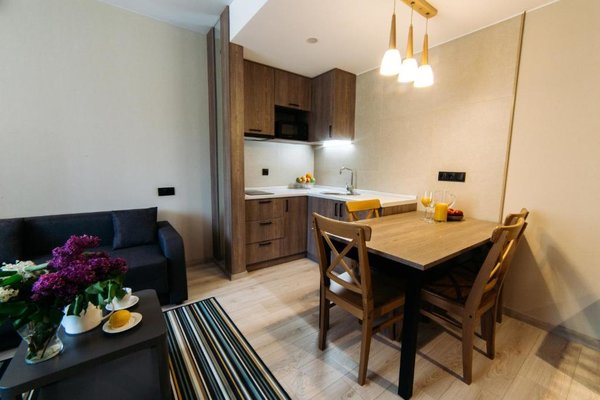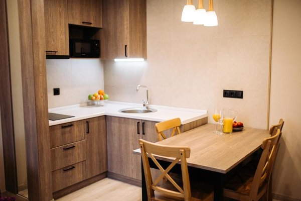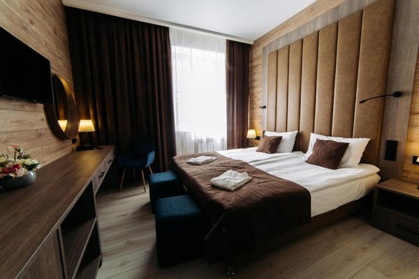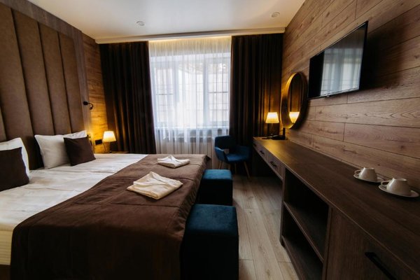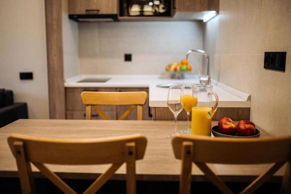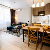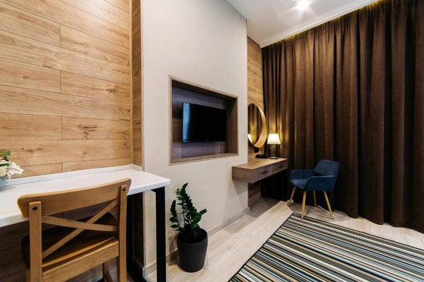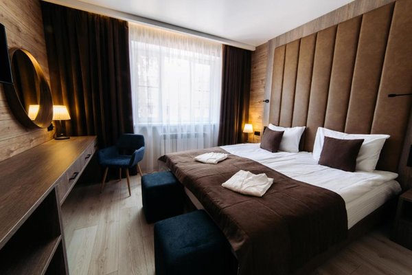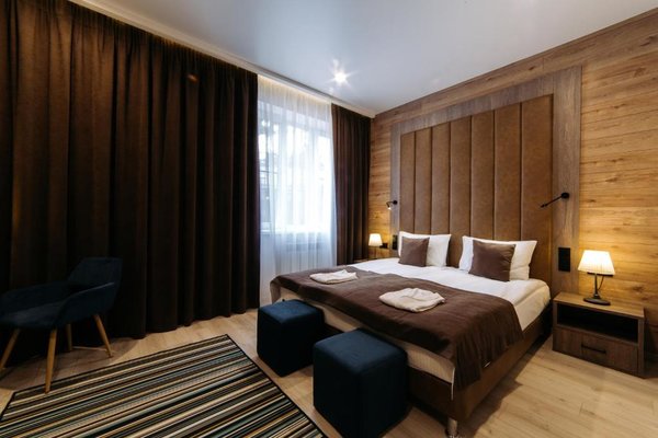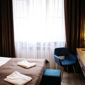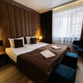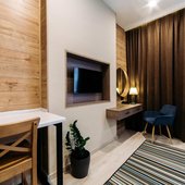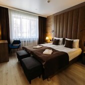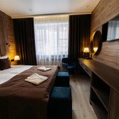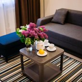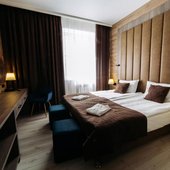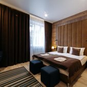 К услугам гостей стильные комфортабельные номера 4* с современным оснащением. Особенность отеля — просторные двухкомнатные Апартаменты с собственной кухней, гостиной и обеденной зоной.