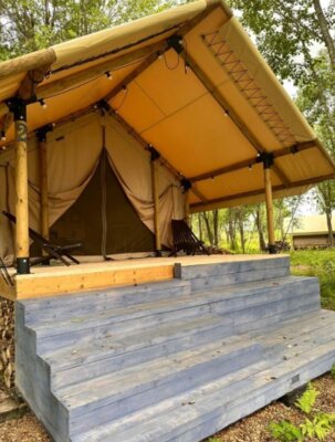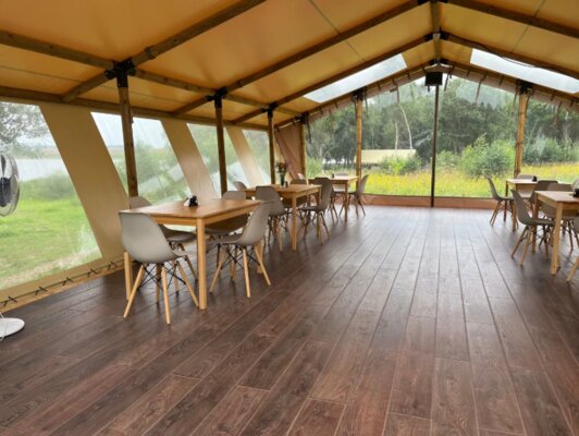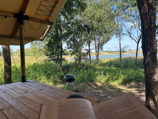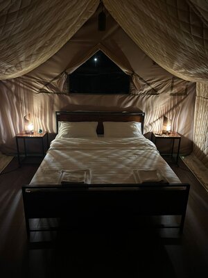 Лежать в шезлонге, глядя на облака. Уйти в лес с книгой и потерять чувство времени. Побывать в бане, а потом — купаться в прохладной воде Вазузы. Разжечь костёр и молча смотреть на искры. Завтракать, когда проснешься, а не по расписанию. Это — настоящая природная релакс-терапия. Самый прямой способ перезагрузить разум. Спать до самого утра в тёплых сафари-палатках или просторных семейных модулях. Утром — кофе на террасе, вечером — уют в бане у воды. Если хочется движения — можно взять сап, лодку или велосипед. Но главное здесь — тишина и пространство. Ни соседей за стеной, ни шума с магистрали.