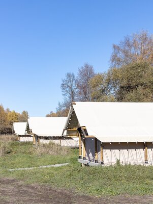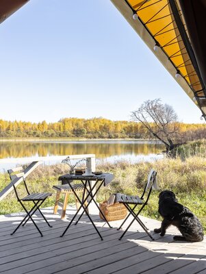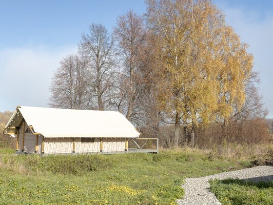 В глэмпинге допустимо размещение с животными высотой до 50 см в холке. При заселении с животными взимается депозит в размере 2000 ₽. Доплата за размещение с животными — 500 ₽ в сутки за сафари-тент.*