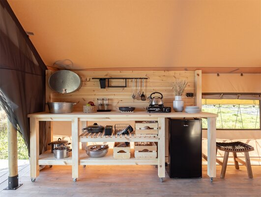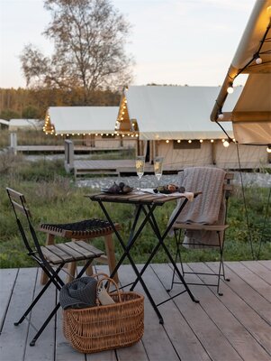 На территории глэмпинга есть пляж и причал, предоставляющие возможность заняться рыбалкой, прокатиться на моторной лодке или сап-борде. Также можно сыграть в волейбол, бадминтон, поиграть в пинг-понг или потренироваться в стрельбе из лука. Гостям предлагается аренда велосипедов для самостоятельного изучения окрестностей.