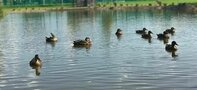 Также на территории гости могут встретить барашек, козликов и уток. Утки живут в специальном домике на искусственном пруду.