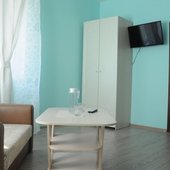 Гостям предлагается самостоятельное приготовление пищи на оборудованных кухнях, с предоставлением всей необходимой посуды; возможна доставка из кафе и ресторанов Десногорска.