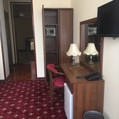 От аэропорта г. Минеральные Воды — 45 км: электропоездом или рейсовым автобусом до г. Кисловодск, далее на маршрутном такси до санатория.