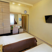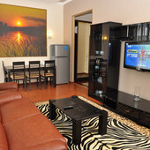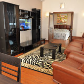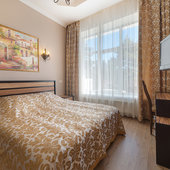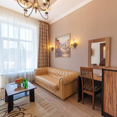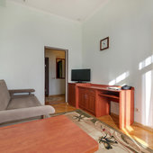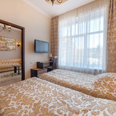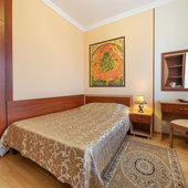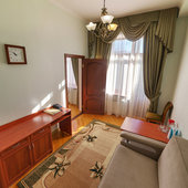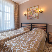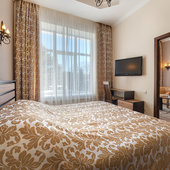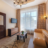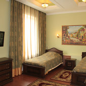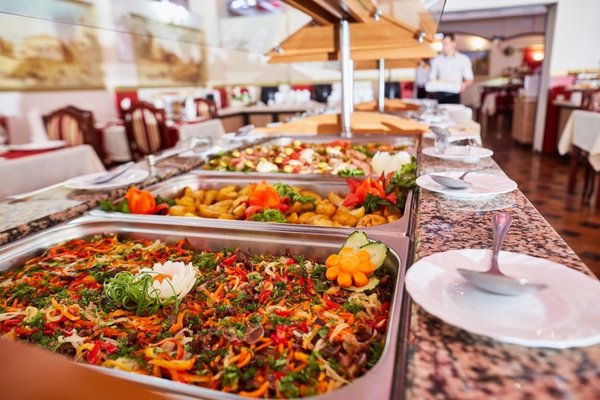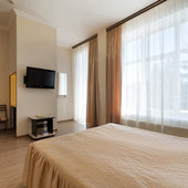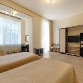 Проживающие в номерах: 2-х комнатный 2-х местный, Люкс, Апартаменты питаются в банкетном зале, а в теплое время года на летней террасе.