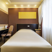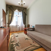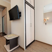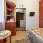 Проживающие в номерах: Однокомнатный одноместный и двухместный, Студия питаются в общем зале столовой санатория.