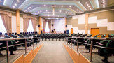 Зал оснащён всем необходимым мультимедийным оборудованием: TV, видеокамера, флипчарт, микрофоны, видеопроектор, колонки, звуковая гарнитура, ноутбук. Площадь — 321 кв.м.