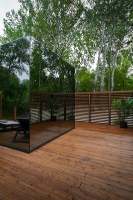 В живописной лесной чаще притаились зеркальные домики, чья отражающая поверхность создает эффект полного единения с окружающим пейзажем. Каждый из них —это произведение современного дизайна, открывающее через панорамные окна захватывающие виды на нетронутую природу.
