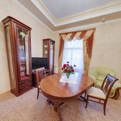 Обеденные залы расположены в старинной части здания санатория, интерьеры которого и приятная обстановка, приятно порадуют Вас.