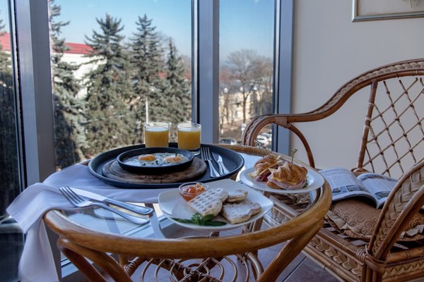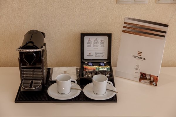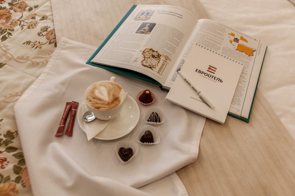 В отеле «Евроотель Ставрополь» сервируется завтрак «шведский стол» с большим выбором горячих и холодных блюд. В ресторанах «Ти-Бон» и «Веранда» на первом этаже подают блюда европейской кухни.