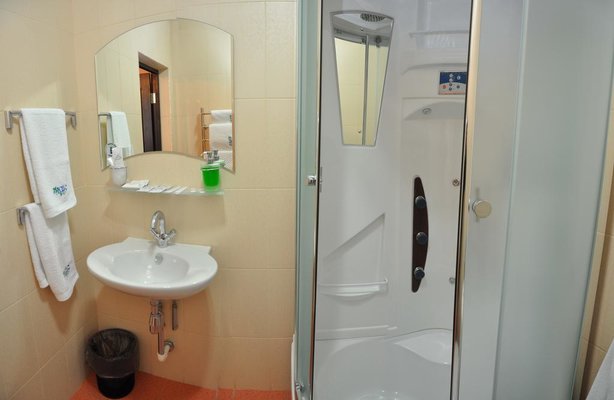 Гостиница «Олимп» располагается в здании «Деловой Центр Квс» и занимает 4 и 5 этаж. Во всех номерах установлен телевизор с плоским экраном, а из некоторых номеров открывается вид на горы. Номера оснащены холодильником.