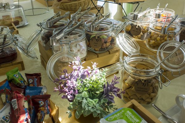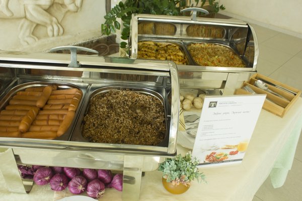 В ресторане Paradise, размещающемся на верхнем этаже отеля, интерьер оформлен в греческом стиле. Там предлагается завтрак «шведский стол». Из окон ресторана открывается панорамный вид. Напитки подают в стильном лобби-баре. В случае ранней регистрации отъезда предоставляются упакованные блюда.