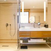 Бассейн санатория «Источник» — это 250кв.м кристальной воды с обустроенной акватермальной территорией. Длина бассейна — 22м, ширина — 10м.