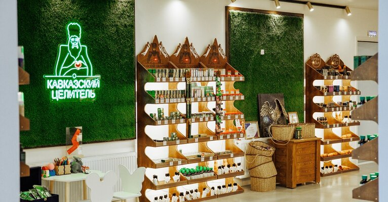 На территории производства «Кавказского Целителя» представлен собственный фирменный магазин кавказской косметики и средств народной медицины.