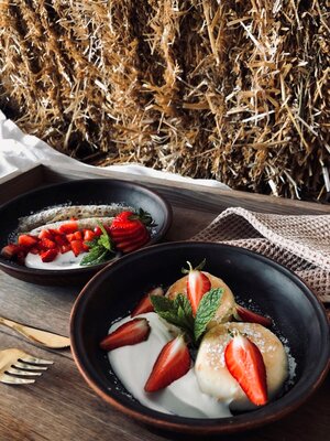 Вкуснейший завтрак из натуральных фермерских продуктов, который вы сможете отведать на вашей вилле, либо в уютном дегустационном зале с видом на гору Джуца.