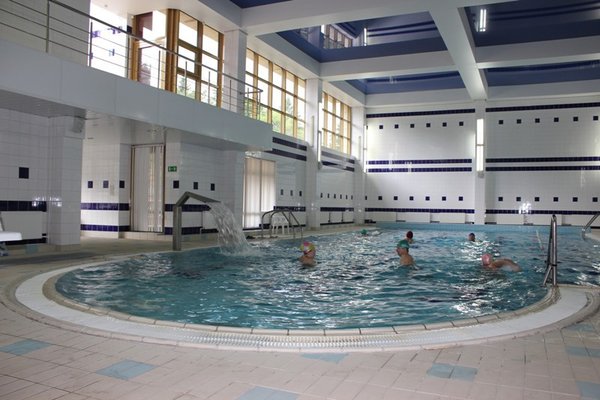 Большой популярностью пользуется лечебное плавание в бассейне, площадь водной поверхности которого составляет 176 кв. метров.