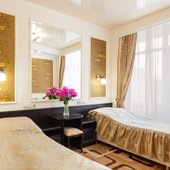 Лечебный корпус оснащен современным оборудованием, все процедуры выполняются по назначению и под контролем специалистов. На территории санатория находится крытый бассейн. В стоимость всех тарифов включено трехразовое диетическое питание.