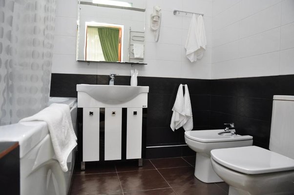 В ресторане отеля подаются блюда кавказской и европейской кухни, а в баре предлагаются различные напитки.