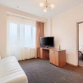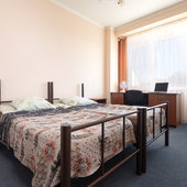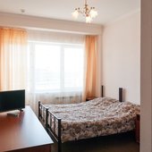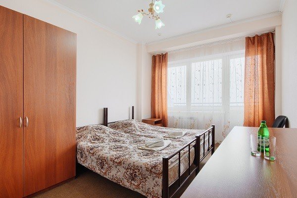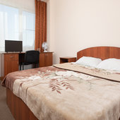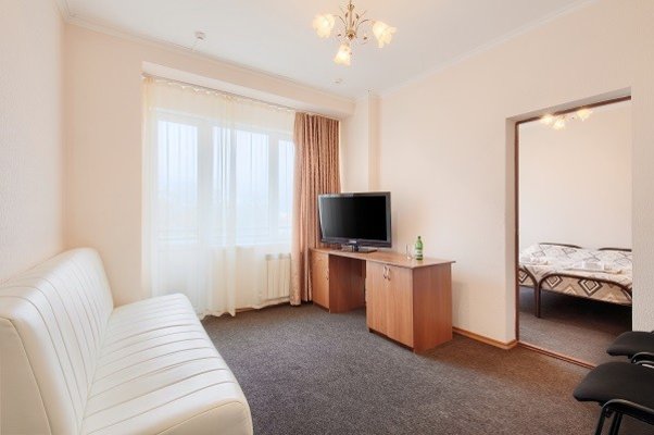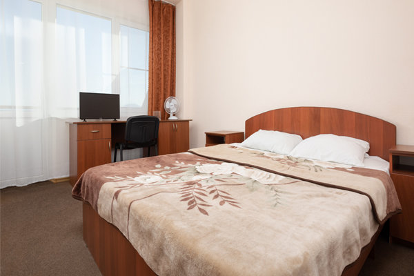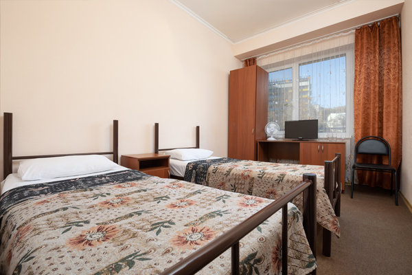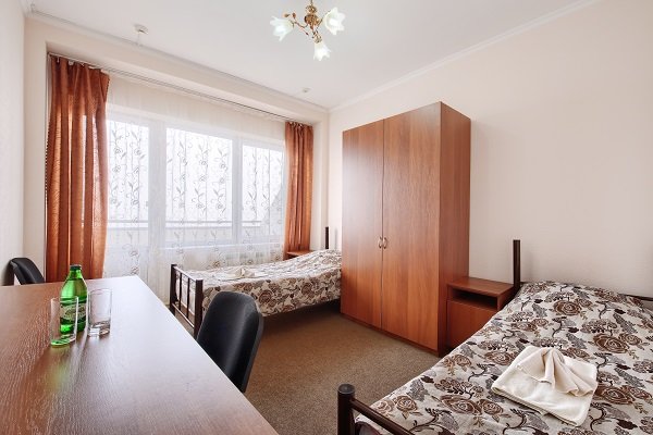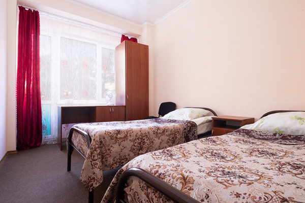 Девятиэтажное здание, оснащенное лифтом, возвышается на закрытой территории недалеко от пересечения улиц академика Павлова и Карла Маркса. Отель предлагает отдыхающим небольшие номера категории «Эконом» и «Стандарт» и вместительные номера «Комфорт» и «Семейные». Независимо от степени комфорта везде есть санузел с душем, телевизор, холодильник и фен. В номерах «Люкс» есть кондиционеры и балконы, откуда открываются живописные виды на Эльбрус и Кавказский хребет.