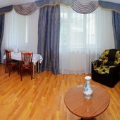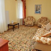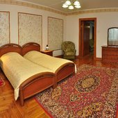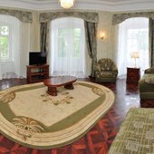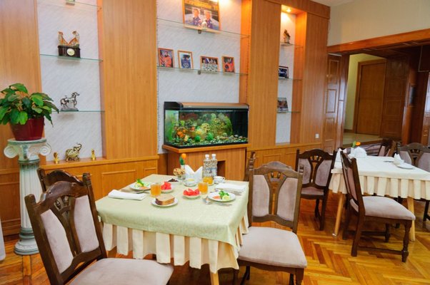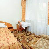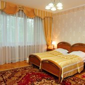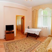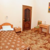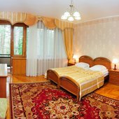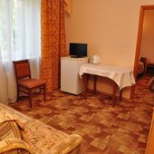 Пансионат представляет собой 2-х этажный коттедж, утопающий в зелени вековых деревьев, имеющий шесть 2-х комнатных номеров «люкс», где нарзан подается в каждый номер, имеет банкетный зал, где Вам предложат изысканные блюда ресторанной кухни, а также выполнят любой Ваш заказ, бильярдный зал, зал отдыха.
