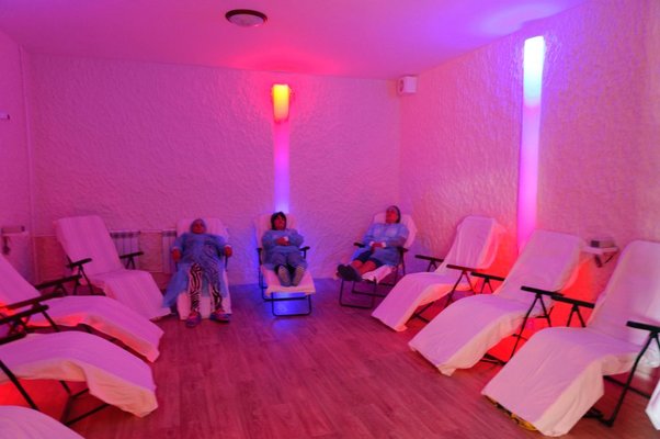 - Управляемая галотерапия – улучшает дренажную функцию бронхов, способствует уменьшению воспалительной реакции слизистой верхних и нижних дыхательных путей элиминации патогенных микроорганизмов, повышению общей неспецифической и иммунологической реактивности организма. Лечебное действие оказывает аэродисперсная среда, насыщенная сухим аэрозолем хлорида натрия в концентрации от 0,5 до 10 мг/м³ и размером частиц 1-5 Мкм. Аэрозоль хлорида натрия оказывает бактерицидное и бактериостатическое действие на микрофлору дыхательных путей. В помещении галокамеры создается оптимальная температура и влажность, гипоаллергическая, гипобактериальная среда;