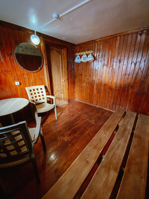 В гостевом доме также есть небольшая баня на дровах. Она оборудована всем необходимым: удобной лавочкой, горячими камнями и емкостью для воды. Несмотря на небольшой размер, баня создает идеальные условия для расслабляющего и восстанавливающего времяпрепровождения. После напряженного дня или долгого путешествия гости могут окунуться в теплый пар бани и ощутить как напряжение и усталость тают.