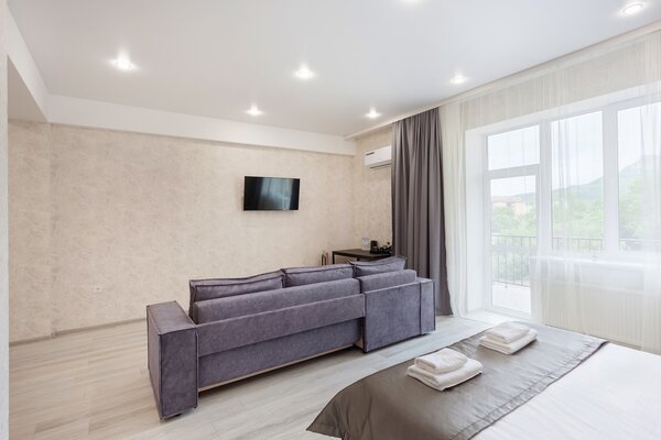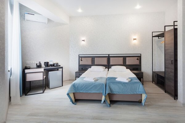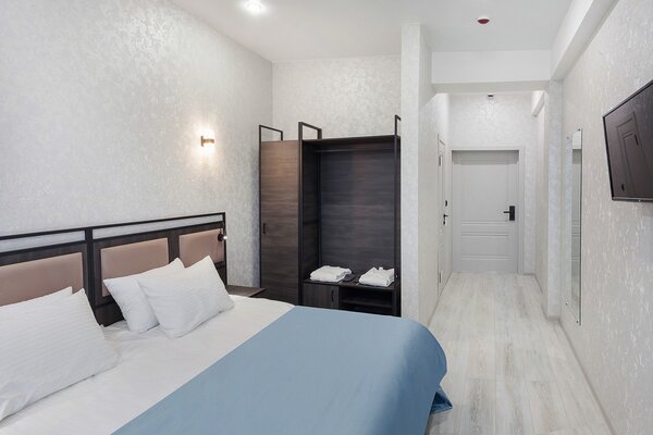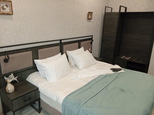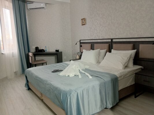 Отель открылся недавно, все новое и красивое) Предоставляют халаты, тапочки и принадлежности для гигиены. Питьевую воду (2 бутылочки) обновляют каждый день. Завтрак стандартный, без изысков) Персонал вежлив и внимателен.