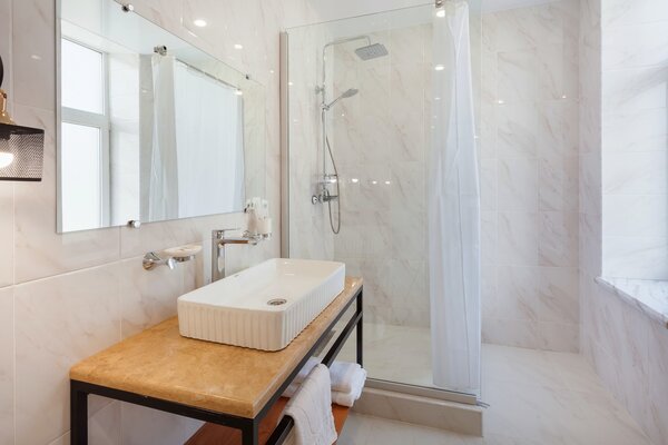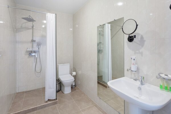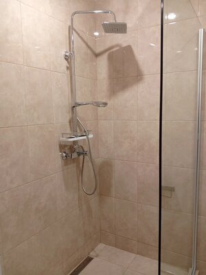 Вода из душевой кабины постоянно оказывается на полу. Герметичности никакой. Ну и само качество воды оставляет желать лучшего, но это скорее особенность города.